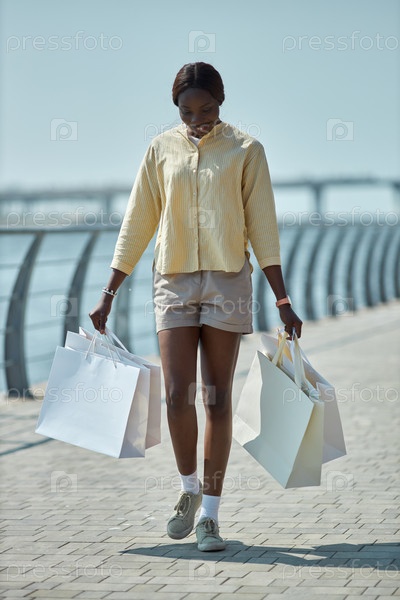 Афроамериканская женщина с сумками для покупок