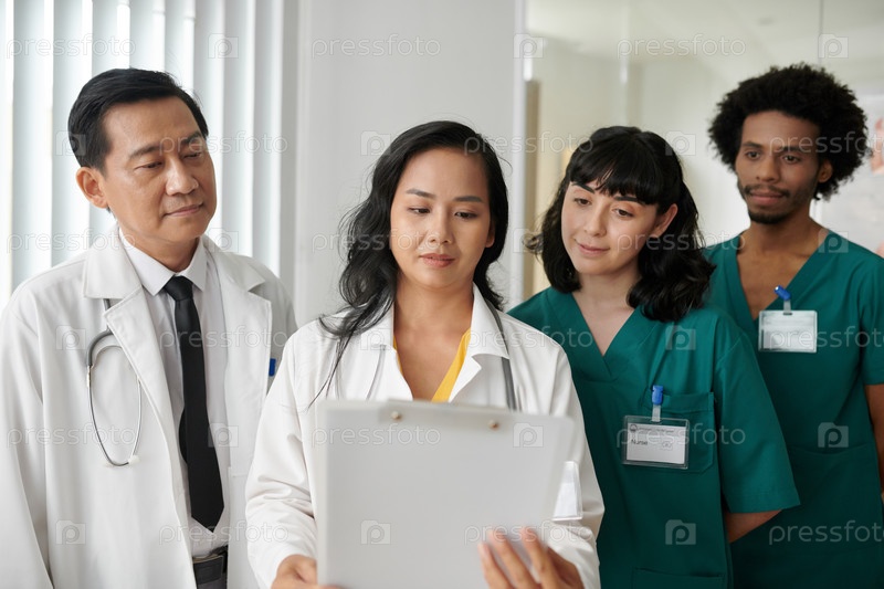 Медсестры и врачи читают документ