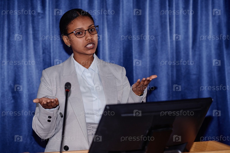 Женщина, выступающая с речью на конференции