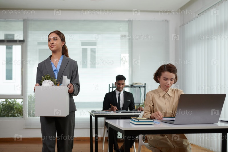 Продвинутая бизнесвумен с коробкой принадлежностей