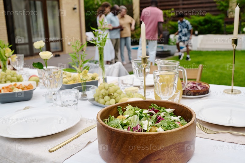 Сосредоточьтесь на деревянной миске со свежим домашним вегетарианским салата