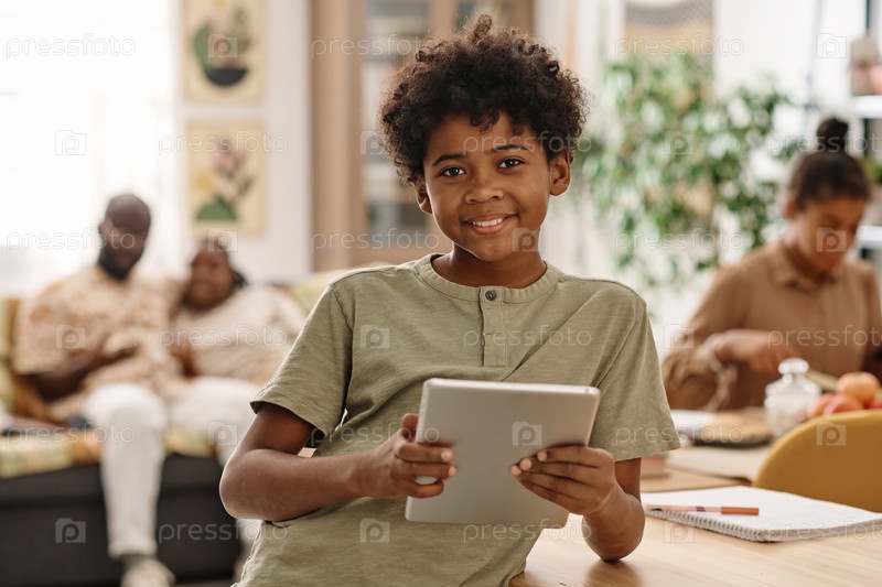 Черный мальчик с планшетным компьютером