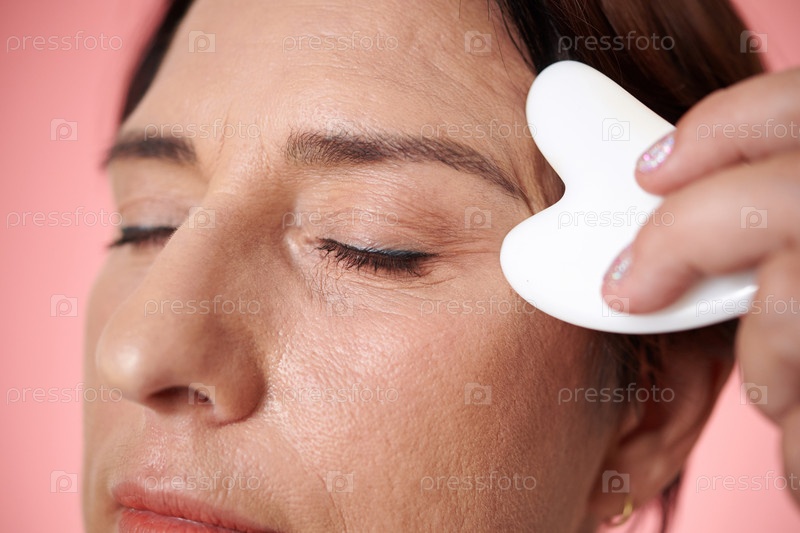 Женщина, масажирующая лицо с Гуа Ша