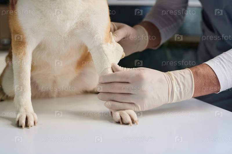 Ветеринар, оказывающий первую помощь собаке
