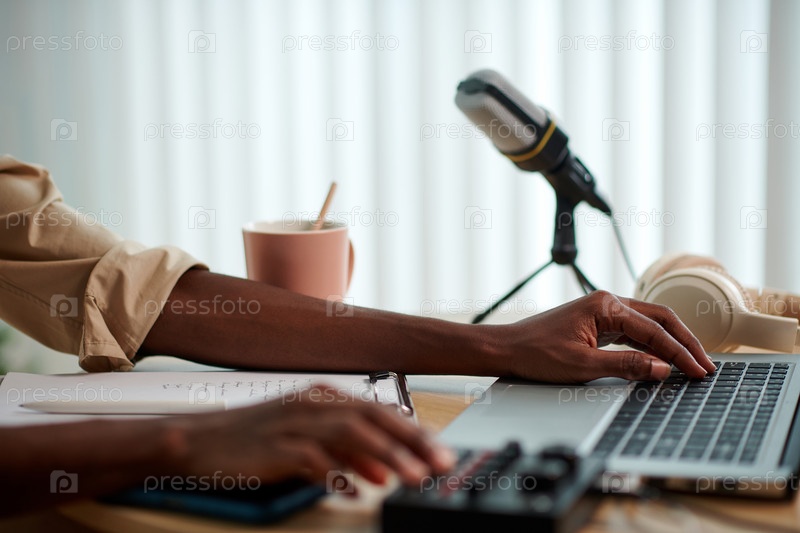 Женщина редактирует подкаст