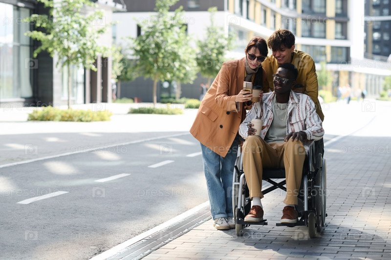 Друзья смотрят фотографии на телефоне