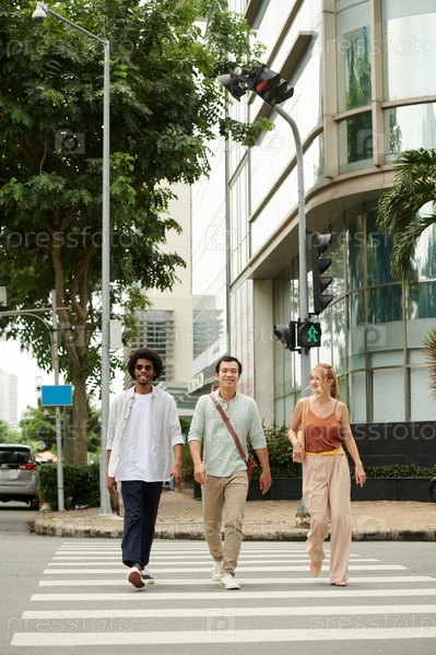 Молодые люди пересекают дорогу