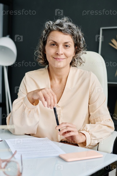 Успешный зрелый предприниматель или генеральный директор с ручкой, смотрящий на камеру