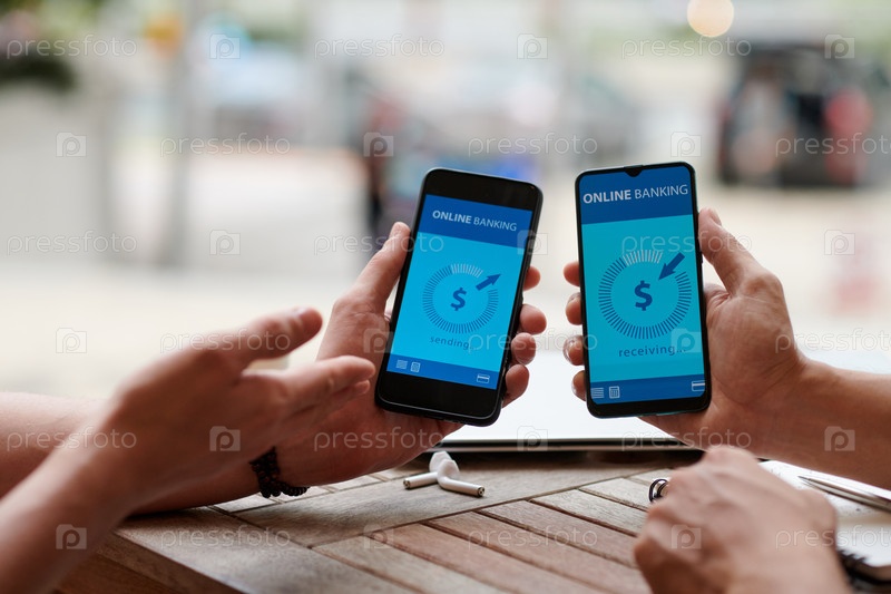 Люди, использующие мобильное приложение для банковского обслуживания