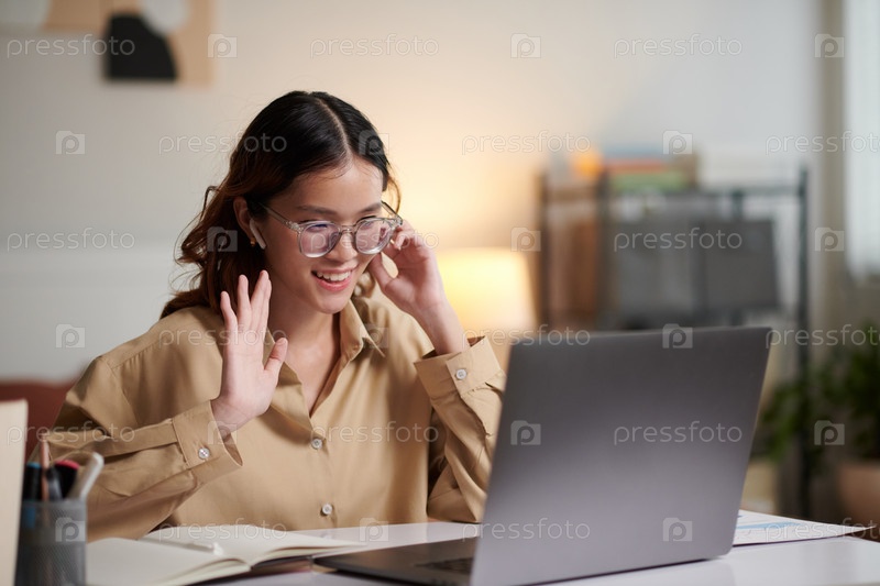 Взволнованная женщина приветствует коллег по работе