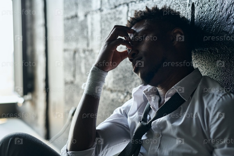 Мужчина с перевязанными запястьями, страдающий депрессией