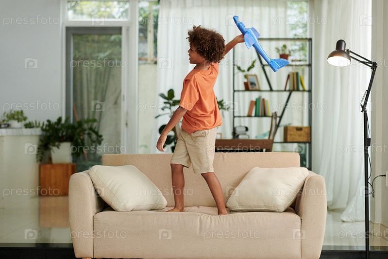 Играя с мальчиком-игрушечным самолетом