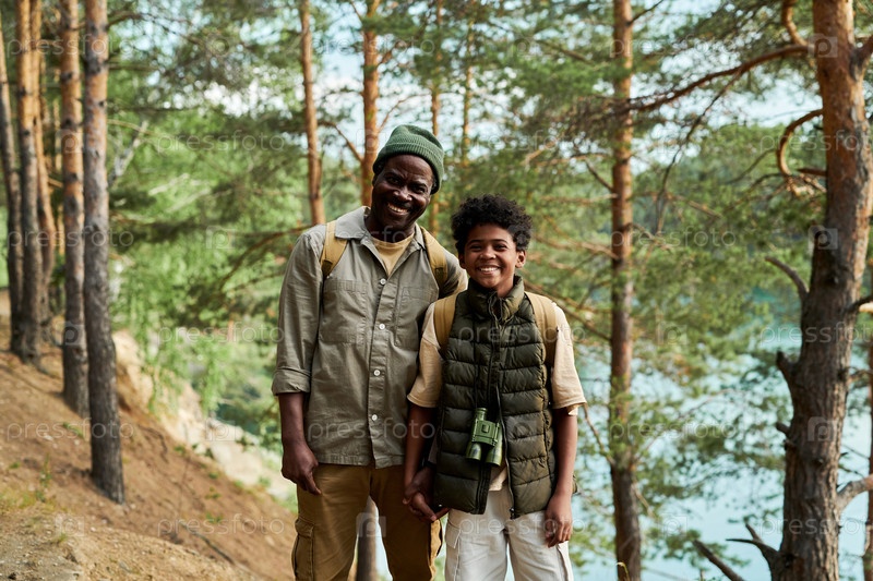 Семейная прогулка вместе в лесу