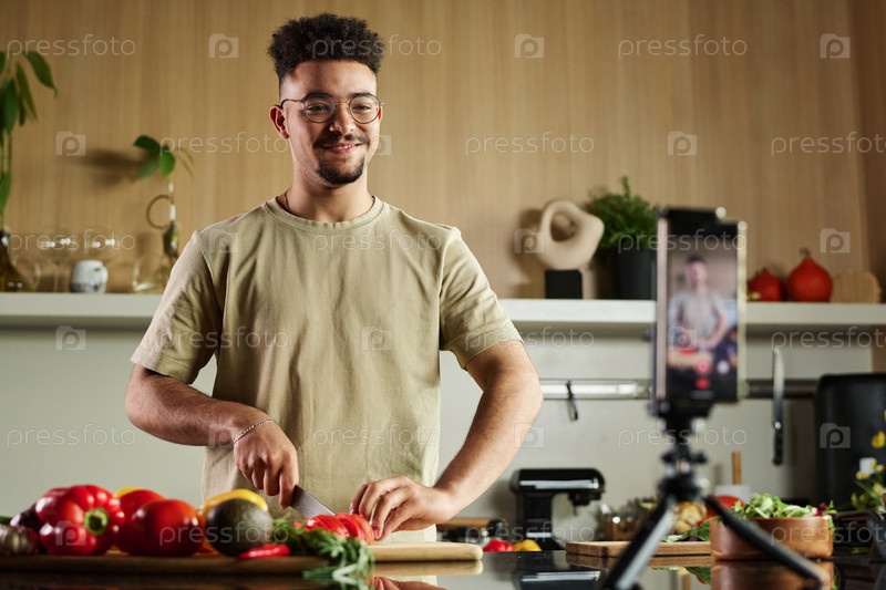 Пищевой блоггер создает контент для своего канала