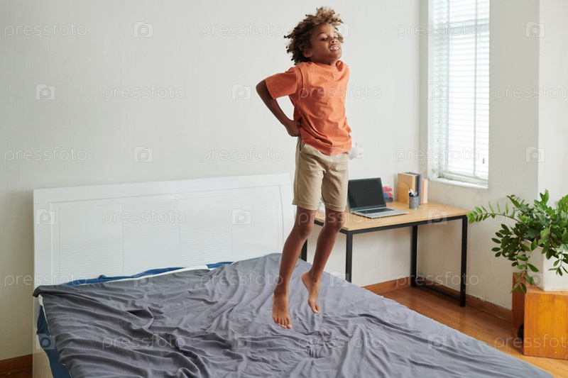 Ребенок прыгает на кровать