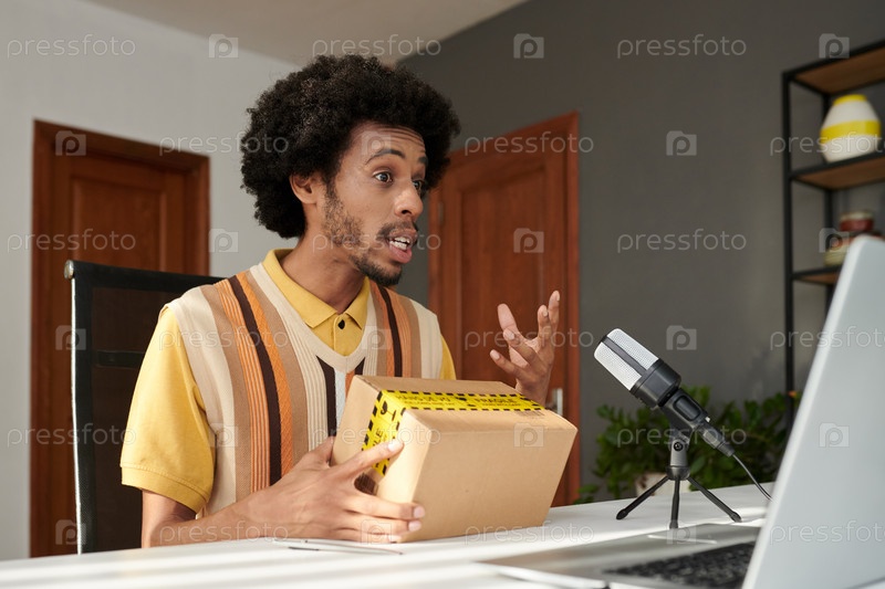 Молодой уверенный в себе мужчина объясняет что-то онлайн аудитории