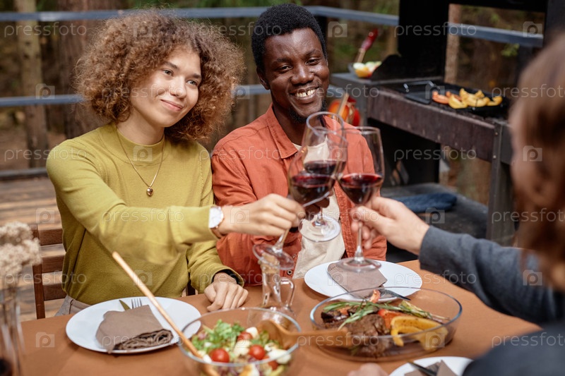 Друзья, выпивающие вином на вечеринке