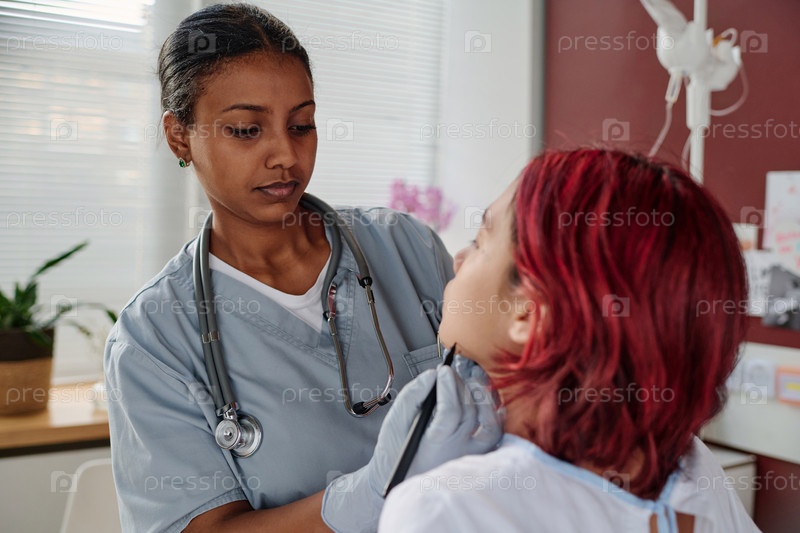 Молодая афроамериканская пластическая хирург-женщина готовит пациента к операции