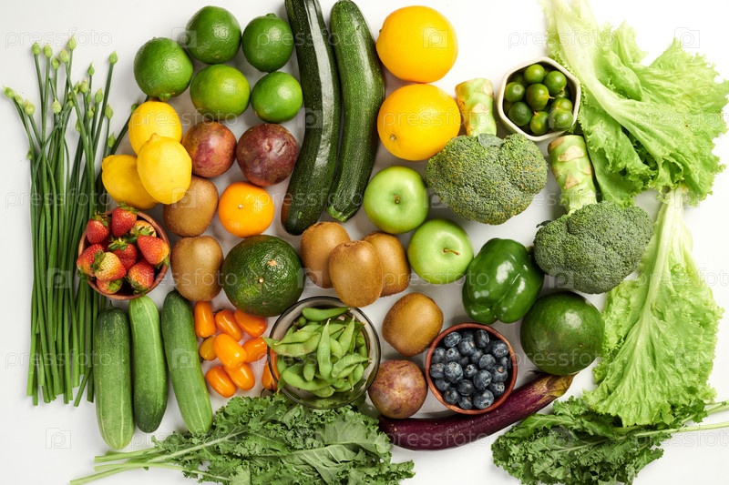 Свежие фрукты и овощи на столе