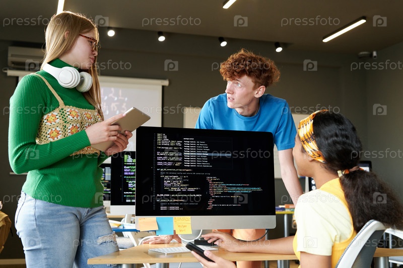 Студенты работают над программным обеспечением в команде