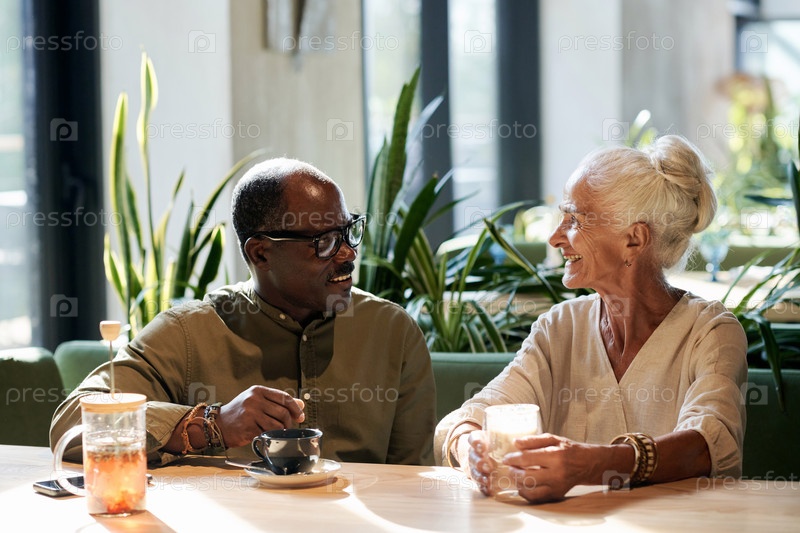 Старшая пара встречается в кафе