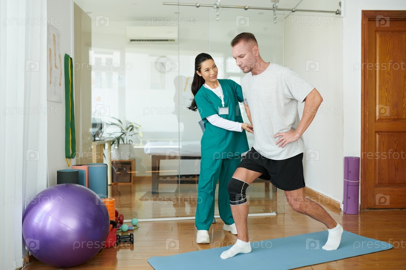 Медсестра контролирует мужчину, делающего легкие