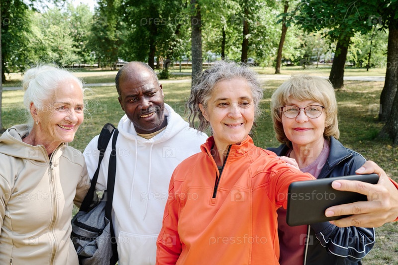 Пожилые люди делают селфи-портрет после тренировки