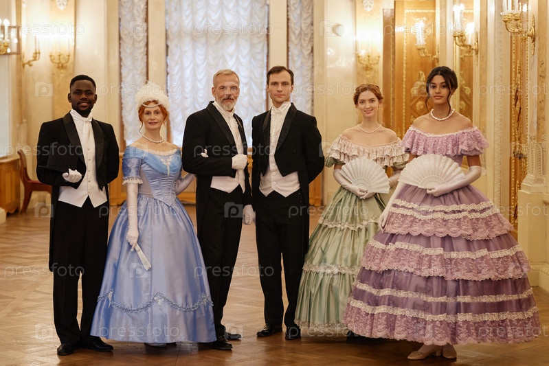Группа людей в викторианских костюмах