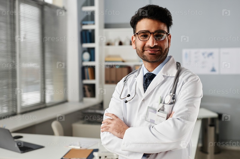 Портрет улыбающегося мусульманского врача-мужчины в клинике