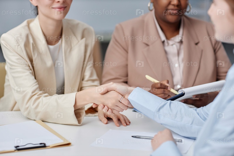 Успешные бизнес-леди закрывают сделку рукопожатием