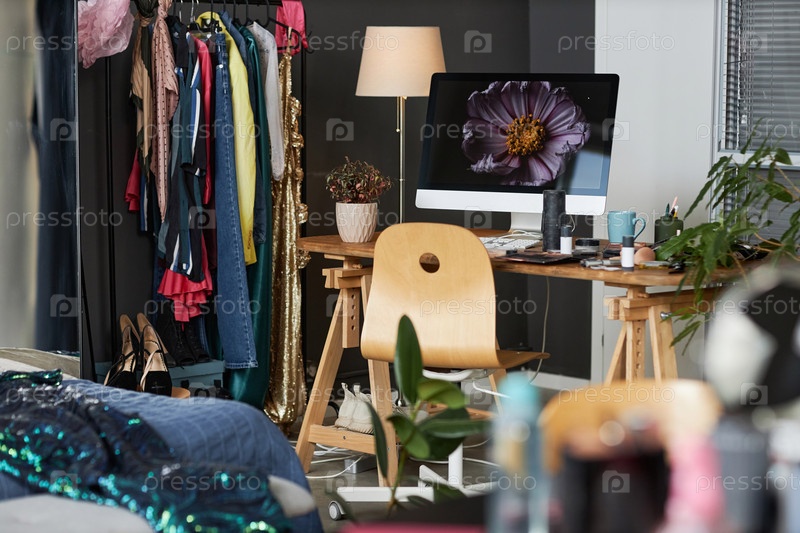 Беспорядочная комната для девочек с компьютером на столе