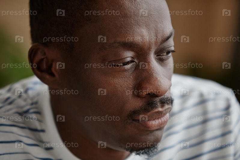 Макро Черный мужчина смотрит в сторону от печали, страдающей депрессией