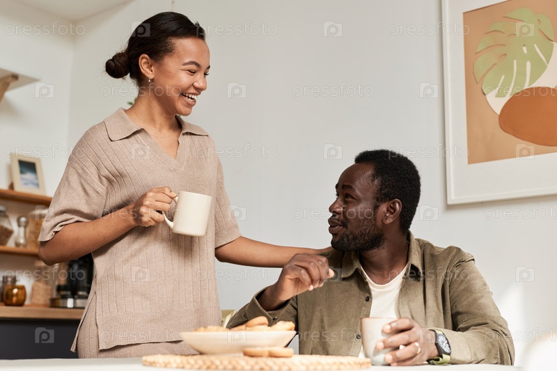 Молодая черная пара наслаждается утренней беседой в уютном доме