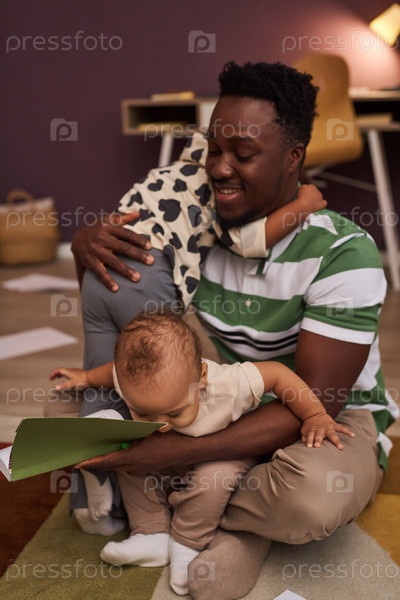 Чернокожий мужчина присматривает за двумя крошечными детьми, которые изо всех сил пытаются стать родителями