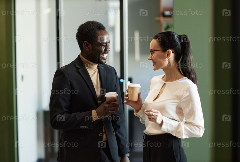 Веселые коллеги разговаривают во время рабочего перерыва
