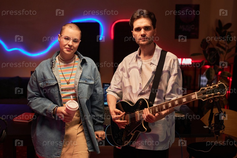 Блогер и музыкант позируют в подкастной комнате