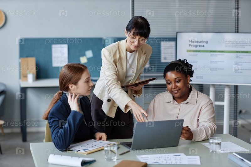 Дамы, использующие ноутбук во время деловой встречи