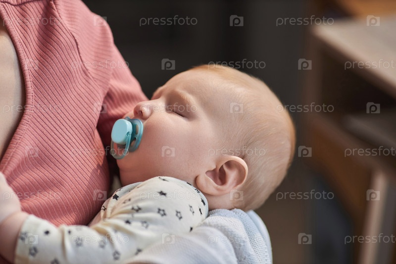 Милый спящий ребенок с соском наслаждается дремлеткой