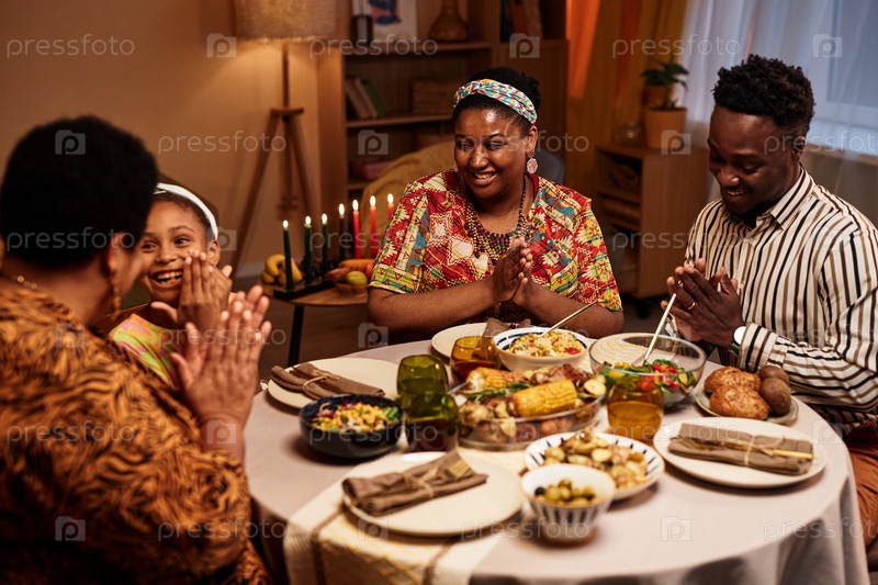 Семья наслаждается ужином Kwanzaa