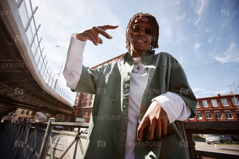 Счастливый молодой афроамериканский мужчина с дредольками, танцующий хип-хоп