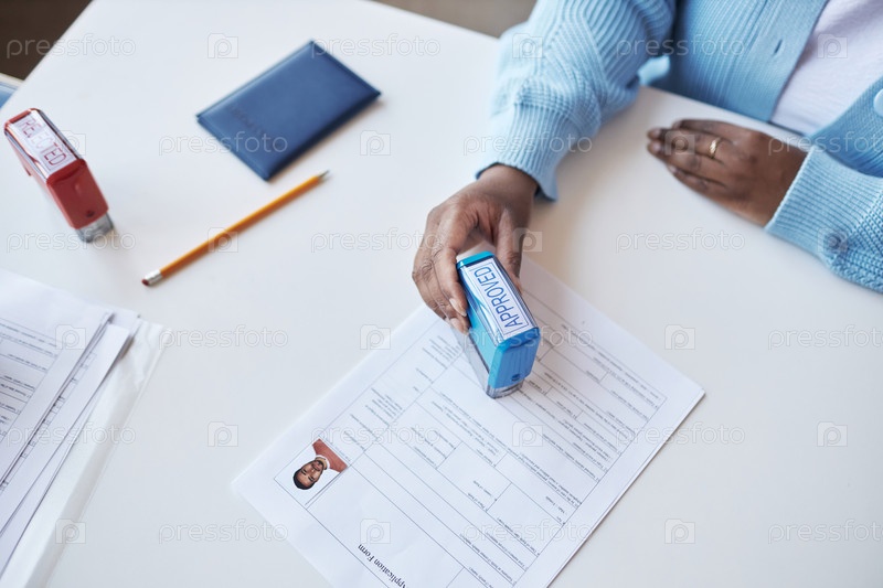 Высокий угол молодой афроамериканской женщины-менеджера центра подачи заявок на визу