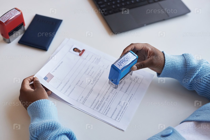 Выше угла руки молодого менеджера штамповки утвержденной заявки