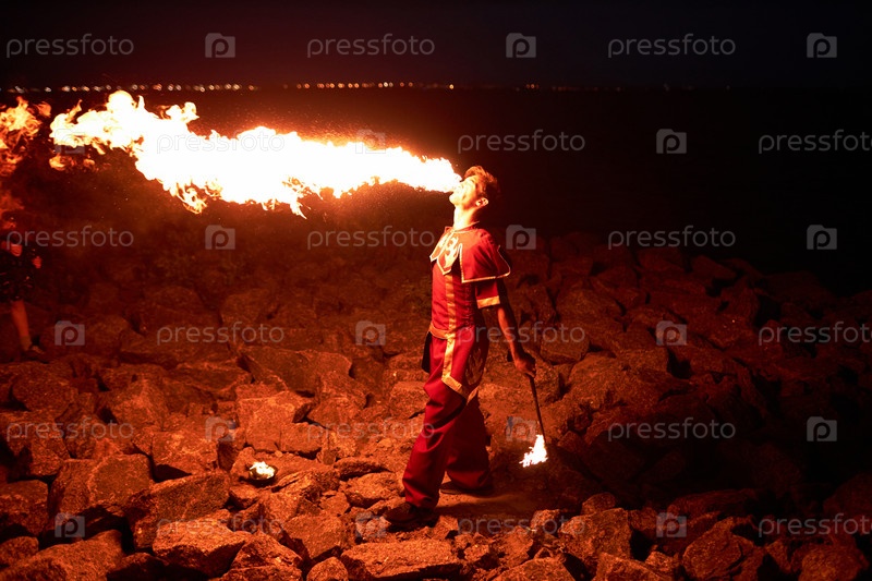 Художник, дышащий огнем на свежем воздухе