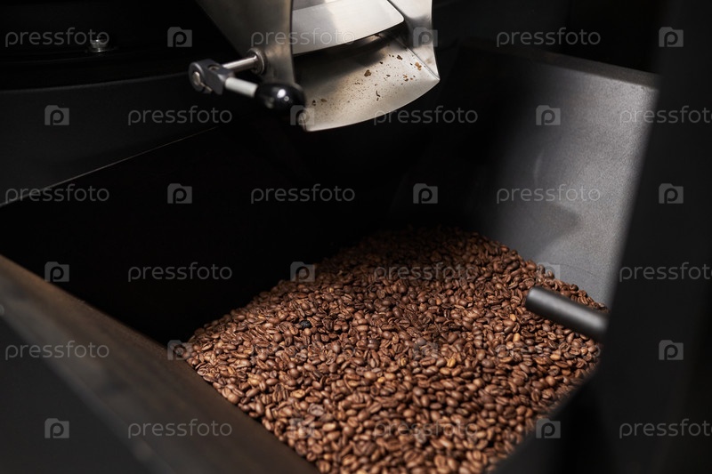 Свежие кофейные бобы обжарены в машине в кафе