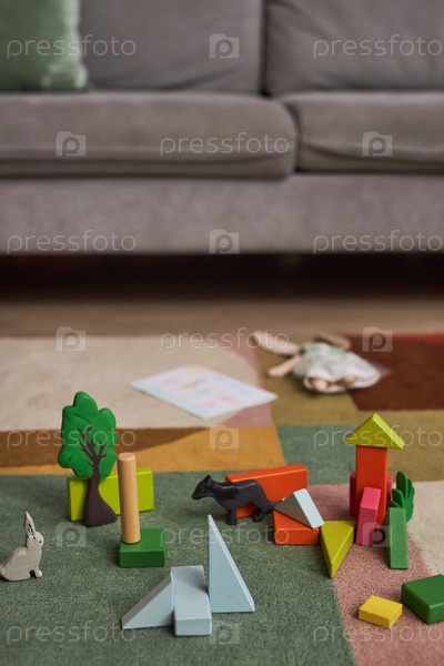 Деревянный игрушечный город с деревьями и милыми животными, креативная концепция игры