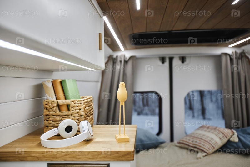 Близость наушников и предметов декора на полке в трейлере ванного интерьера