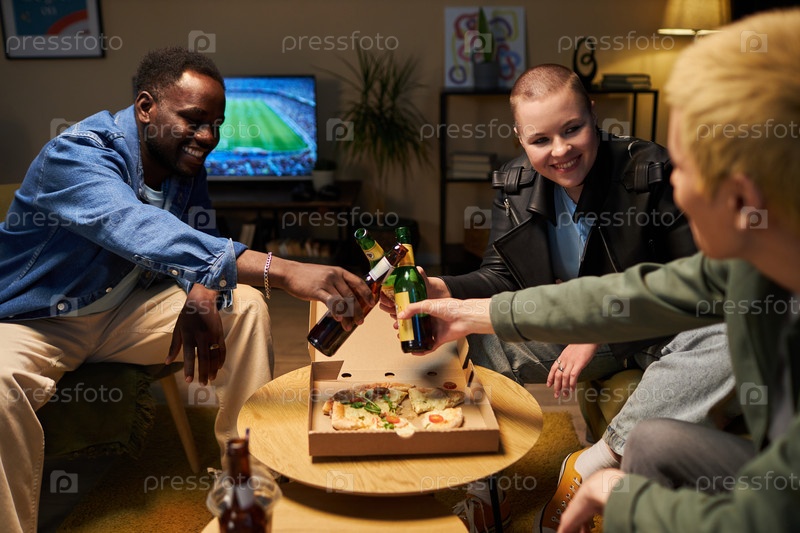 Веселые молодые взрослые празднуют на домашней вечеринке