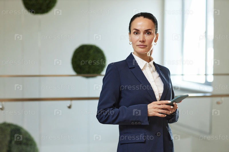 Деловая леди смотрит на камеру