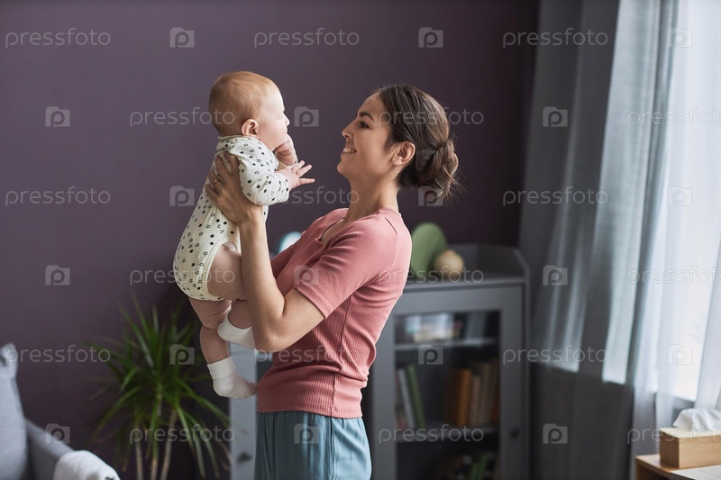 Счастливая молодая женщина, которая держит ребенка и наслаждается материнством