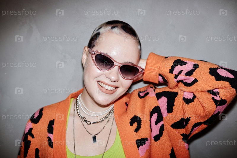 Молодая женщина с гепардовым печатным искусством волос в солнцезащитных очках